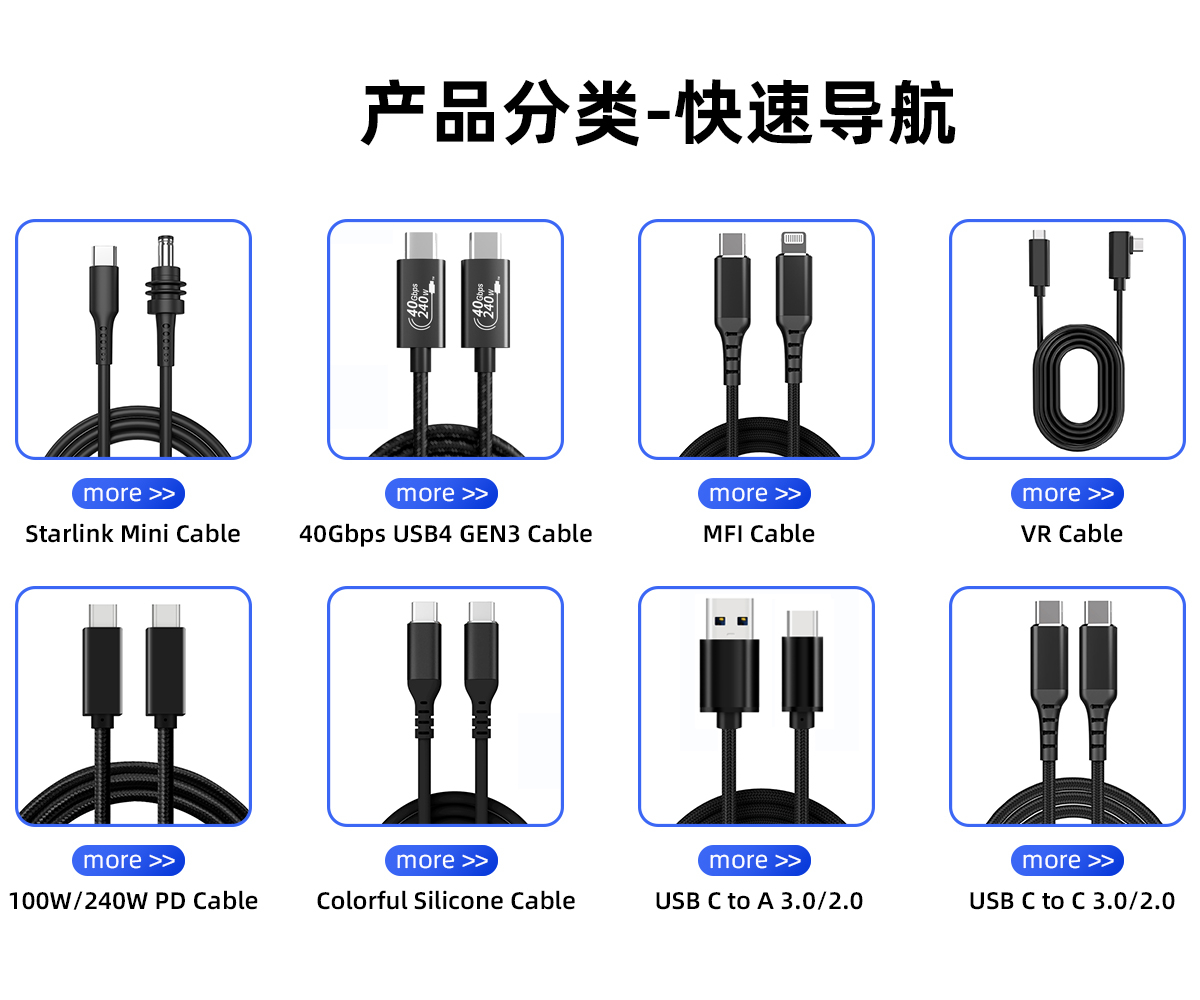 主な製品:サンダーボルトusb4ケーブル、スターリンクケーブル、vrケーブル、タイプcケーブル、mfi認定ライトニングケーブル